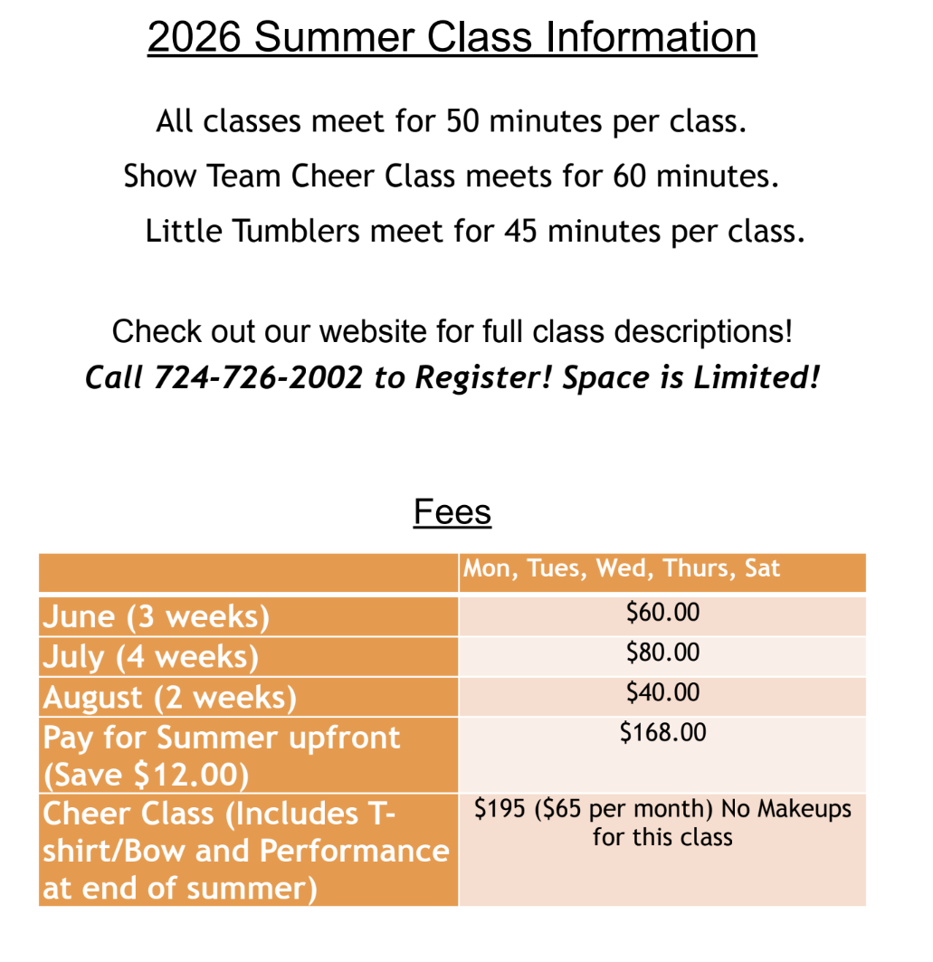 Triple Threat – Emphasis on learning Tucks, Layouts, and Twisting along with Jumps to tumbling to improve coordination and body awareness. Ideal for athletes in school cheer or Level 3/4/5 All Star cheer. Stunt stands will be available. Required skills to enroll in this class: 3 Standing BackHandSprings and Round-off 3 backhandsprings. Calendar color is Red